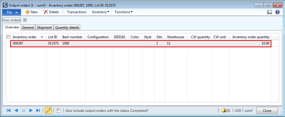 15. To check the output order details, Go to Transfer order lines --> Select the item -->Click on Inventory--> Click on Output orders.