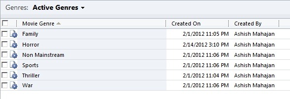 1) I will use few entities to show filtered lookup configuration. I will use Movies, Genres and Sub Genres. Movies have N:1 relationship with genres and sub genres.
