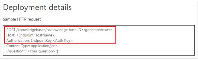 · Get your knowledge base ID, host url, and the endpoint key from the settings tab of your knowledge base in the QnA Maker portal with following format: