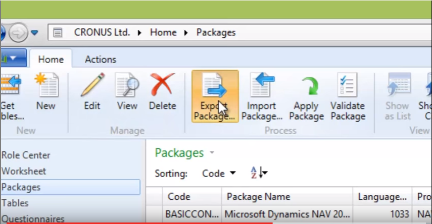 - Click on the newly created package and export it. This creates a .rapidstart file which can be imported in a new company.