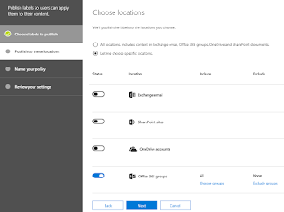 For me I wanted to be able to retain content in Office 365 Groups only, as I'm going to use that in my MSDYN365 deliveries.