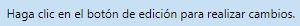 "Haga clic en el botón de edición para realizar cambios.", as currently I am working on environments in Spanish.