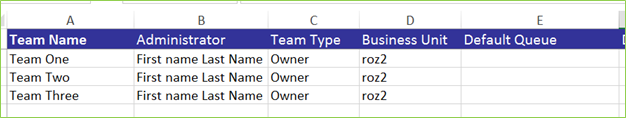 I started with the data import template available for the Team entity and entered the information about three new Teams as shown above. After the import was successful, I began to configure the Team by adding Users and Security Roles and noticed that the "Salesperson" role was automatically assigned to all imported Teams.