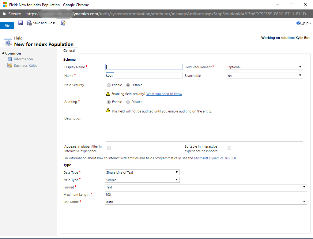 Kylie Bot Part 13 - Creating a Dynamics 365 Index Solution