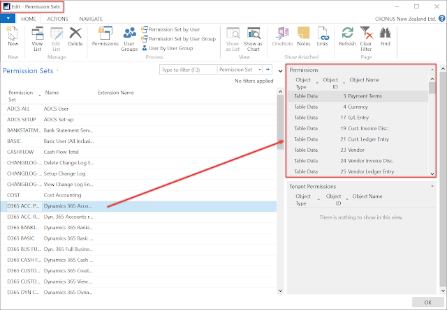 As a first step if you click on the "Permission Sets" it will open up a window with all the permission sets available in the Dynamics NAV.