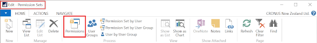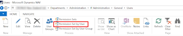 If you navigate to Users using department or using "Google Search" of Dynamics NAV, you can see few options on the ribbon. Today I will only go through the "Permission Sets" and will come back to "User Groups" on a different post.