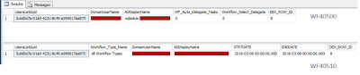 Here is the original stored procedure which runs through the workflow delegation tables, and remove all delegations for all the users [wfOutOfOfficeDelegationCleanup]