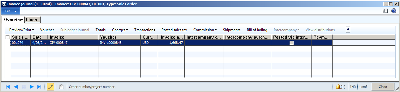 9. Ledger : the ledger information will get populated after the posting of the charges in the ledger i.e. after the sales order invoice posting.