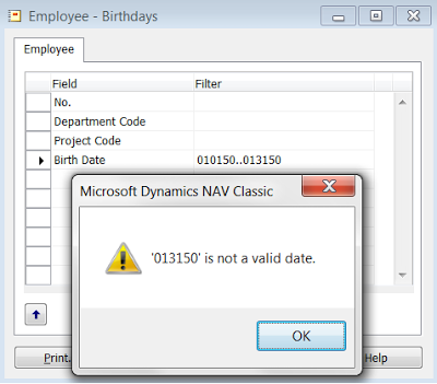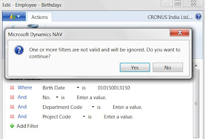 One or more filters are not valid and will be ignored Message in NAV RTC