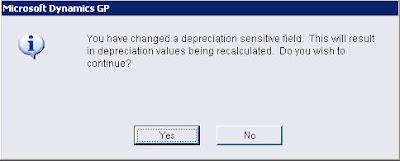 When you make changes to depreciation-sensitive fields in an asset book record, depreciation needs to be recalculated. Changing any of the following fields requires recalculation –