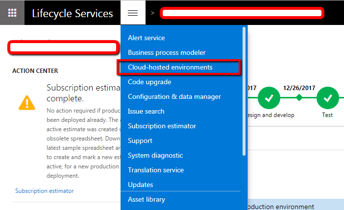 Open your LCS project and click on Hamburger icon of LCS Menu Bar and click on cloud hosted environment.