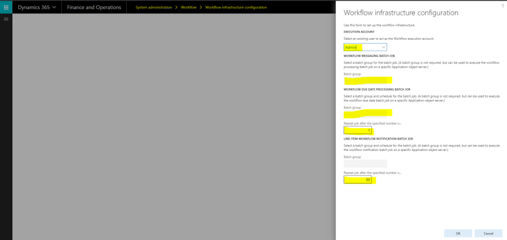 Navigation path: System administration > Setup > Workflow > Workflow infrastructure configuration