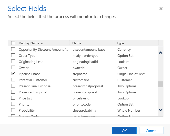 Select "Pipeline Phase" field from "Records Fields Change" |
