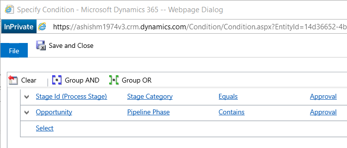 - Either the "Stage Category" field value for the corresponding "Stage Id (Process Stage)" entity