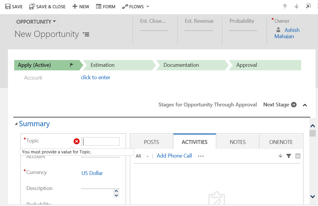 There are times when you need to check for a Business Process Stage change in Opportunity out-of-the box entity. On the change of a Business Process Stage, you might need to run create/update a record.