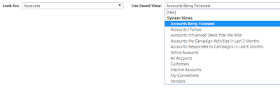 - We can see that “My Active Accounts” is not visible in Account view selector list. Even this view also not available in advance find view.