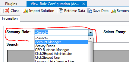 - Open View-Role Configuration plugin. If you are using this plugin first time you need to click on “Import Solution” button first.