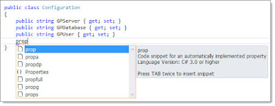 Typing "prop" and pressing tab twice will automatically create a property line ("automatically implemented property").