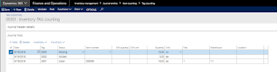 Tag counting journal is used during counting process, mostly at the year end where we enter the items, it's corresponding qty and a tag number with status in the journal lines.