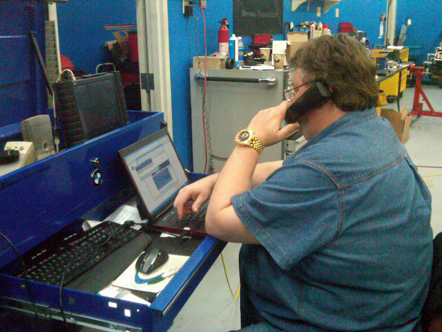 It's interesting to see how software powers the world. A car as sophisticated as a BMW is considered a Computer on Wheels and requires as many service packs as any accounting software in the market to keep it performing at its best. Ron also took his time to greet David, despite being extremely busy applying service packs to his own car, and explained some of the intricacies of David's 2009 BMW 125i and the performance options [not] currently available for it.