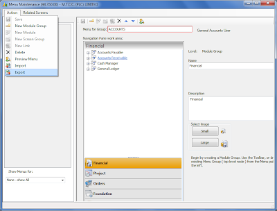 Click an Action menu and select the Export menu option to export the selected group menu as an XML format for later use.