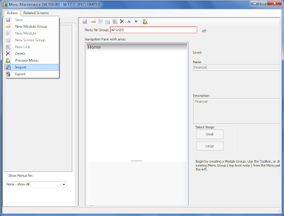 Click the Action menu and select the Import menu option to import an already exported XML format menu file.