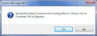 Respond to the System Message 9859 with Yes to overwrite an existing menu; No to append an existing menu