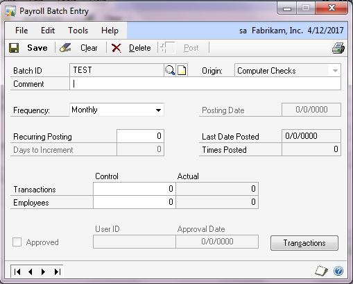 #2 Recurring payroll batches (Transactions>>Payroll>>Batches)