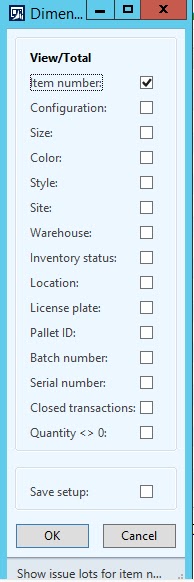 | Dimensions Display form in AX. Be sure to save your setup! |