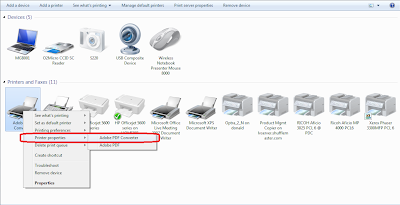 Initially, you must go to the Devices and Printers panel in Microsoft Windows, then right click on the Adobe PDF Converter printer and choose Printer Properties.