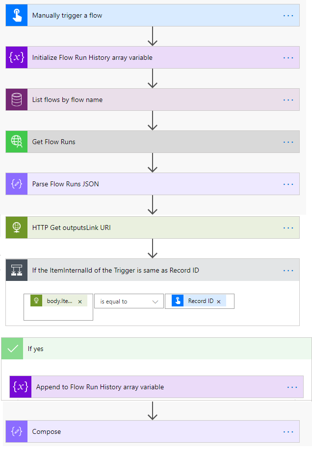 Flow Run History array will hold the information of the run history in JSON array format.