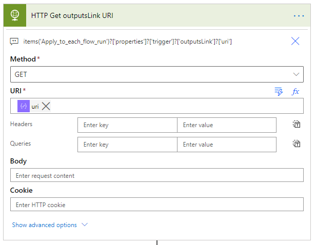 3. Fetch output JSON of trigger for each flow run using HTTP GET method