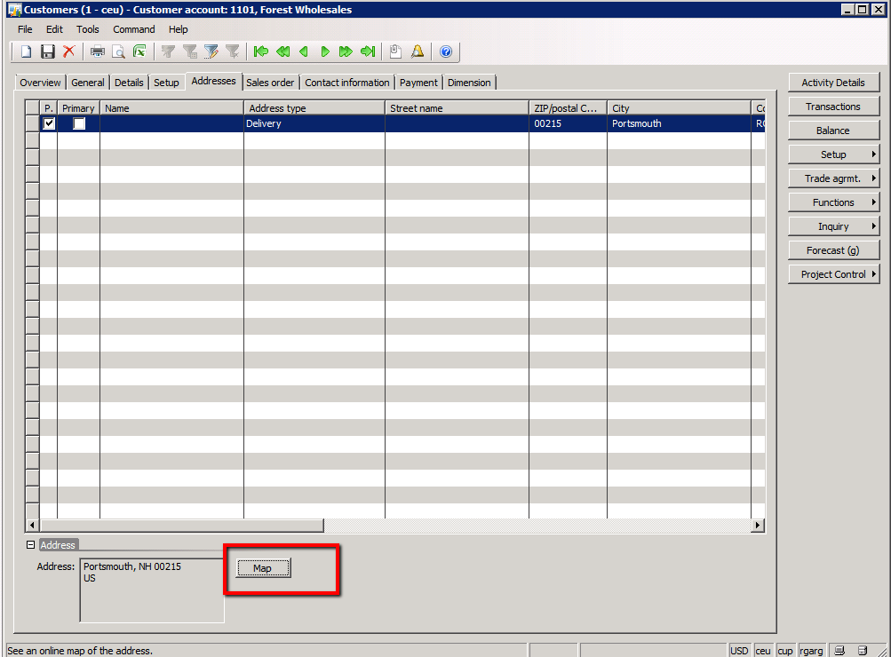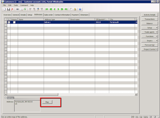 e.g: On customer master form you will notice a new button “map” under the fast tab of addresses.