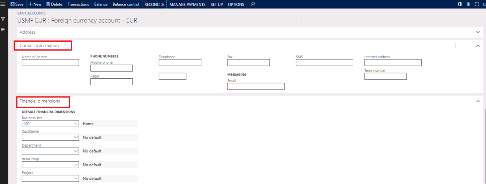you can add contact information and finincial dimension