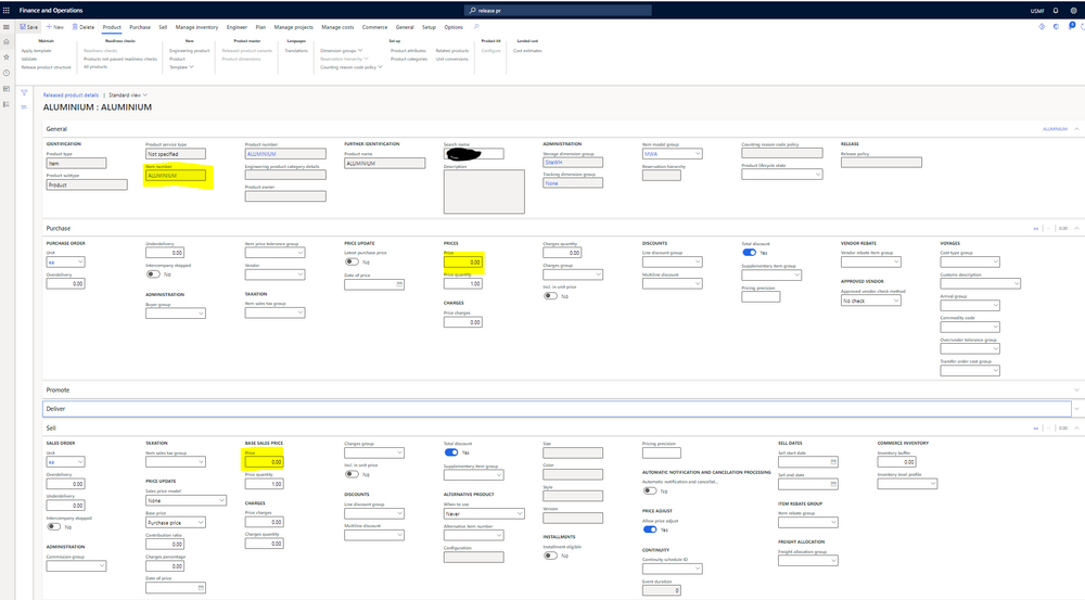 - Set up released product for commodities that will be shipped with 0 purchase/sales price (we later create payables/receivables primarily via charges/cost types as we do not physically purchase/stock the product to be shipped anyways)