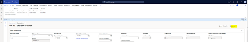 As soon as the contract is finalized a SO is created. We use the above configured customer account. We enter the commodity product record to be shipped on the SO lines. This product record has all necessary commodity and shipping codes associated/maintained at the product level. If needed we can attach any contractual terms as attachments and add additional information if needed such as fin dim defaults. For now, we ignore such cherries on the cake. You can see that the SO has a 0 unit price as we set the default sales price for the commodity released product record to 0. That means, we do not create any receivables at this point here.