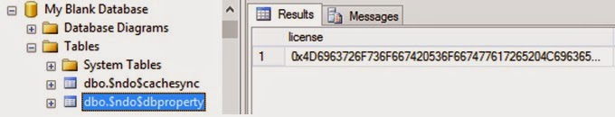 When i Save License in Database from Alter Database options it get stored in Table - $ndo$dbproperty within the database as shown below -