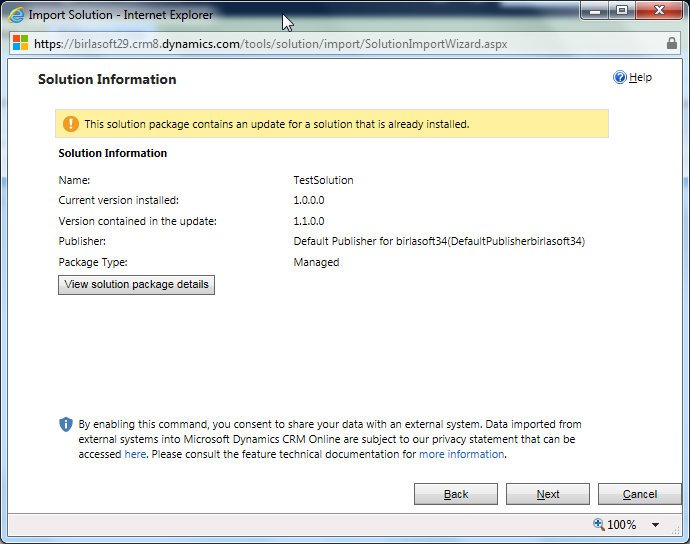 Overwrite Customizations: Selecting this option will overwrite any unmanaged customizations previously performed on components included in this solution. All updates included in this solution will take effect. From above example- In this case the field length will be updated to 150.