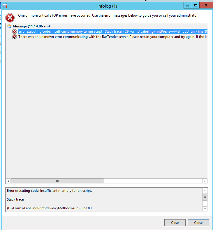 If you see the error "Error executing code: Insufficient memory to run script"