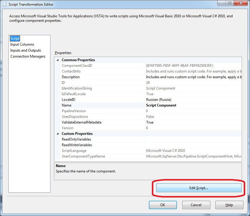 Add “Script Component” of type Transformation to add identifier of stage of BPF: