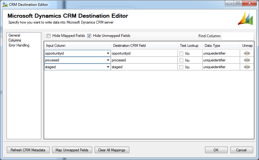 Save and add “Dynamics CRM Destination” component: