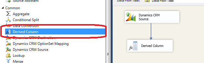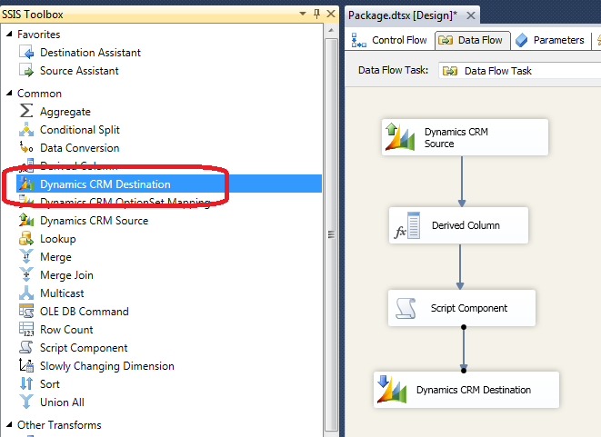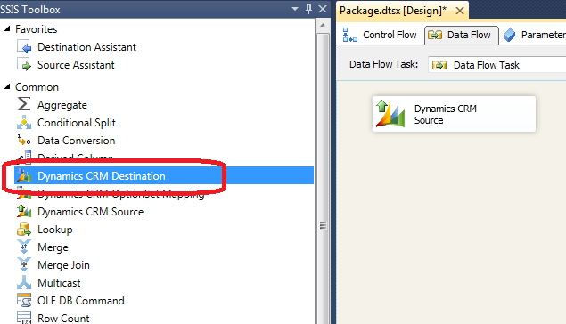 Open created Data Flow Task and add Dynamics CRM Source to Data Flow Task: