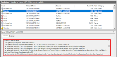 Today, i will be discussing about one of the common issue of expired certification on development machine. You guys must have observed one of the common error while accessing AX through web browser typically using this URL (https://usnconeboxax1aos.cloud.onebox.dynamics.com/).