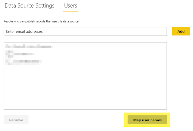 Given the scenario where you're trying to connect some on-premise SSAS with PowerBI in the cloud, who's to say you're fully synchronizing on-premise Active Directory with Azure Active Directory? What if your local domain doesn't map the users perfectly with the usernames in Azure AD? This is where the "Map User Names" comes into play. We can actually add string replace rules to the usernames, so if your users are not perfectly mapped between Azure AD and On-Premise domain, you can still get this to work.