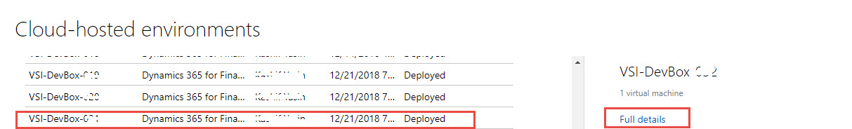 Step 4) Click on your cloud hosted environment and click on its full details option.