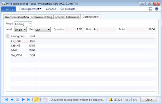 However on Costing sheet tab you can also see an aggregated Total as well as breakdown based on Cost groups defined in Costing sheet