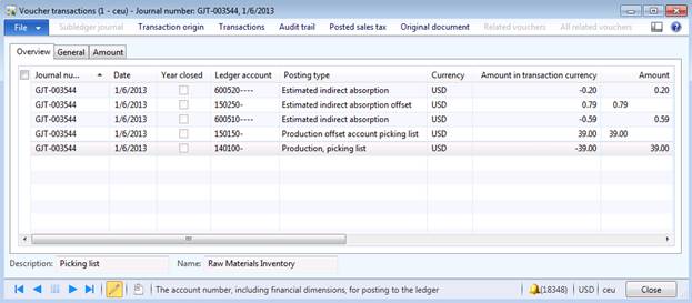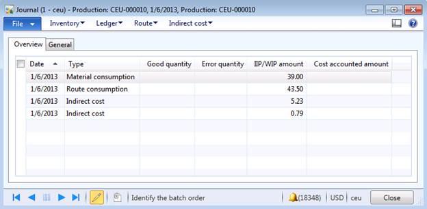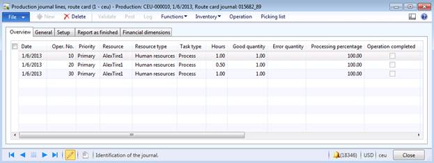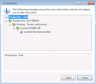 As the result the following message will be displayed informing that Picking list journal and Route card journal have been posted for the consumption of material and labor