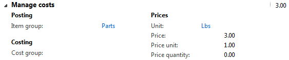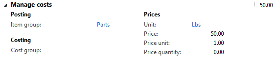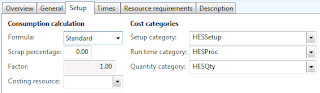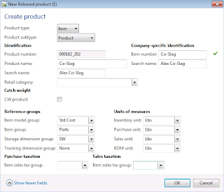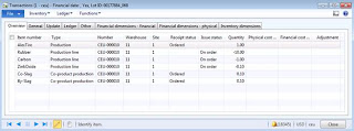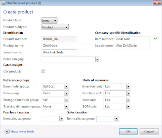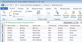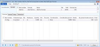 Number of released products will be created in Microsoft Dynamics AX 2012 which will have similar characteristics for the sake of simplicity. All of them will be Standard cost controlled, Site and Warehouse will be used as Storage dimensions, default Site and Warehouse settings will be defined for released products and finally cost price will also be defined for all released products (not using Formula calculation for Formulas). Please note that in process industries we deal with Batch controlled products however for the sake of simplicity I didn't introduce Batch as Tracking dimension in this scenario.