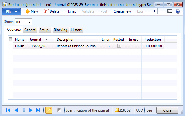 Report as finished journal lines have details of what finished goods and what co/by products have been received into inventory