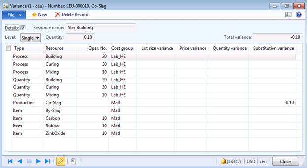 Please note that the system recorded financial costs for inventory transactions according to posted material and labor consumption as well as all applied overheads, and also it calculated adjustments to predefined standard costs. Adjustments to standard cost were needed because initially I didn’t use Formula calculation to calculate cost price of manufactured products and specified their cost prices manually. Please note that the system didn’t record any financial costs for Co/By products because in this simplified setup the cost of production is not allocated onto Co-Slag Co-product and the cost of By-Slag by-product doesn’t add burden to the cost of production. Please see Appendix A and Appendix B for examples of different setups as it relates to cost allocation for co-products and burden cost for by-products. The system didn’t record any financial costs for Co/By products, however standard cost adjustments were made to Co/By product inventory transactions as usually